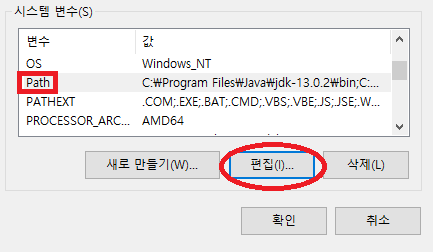시스템 변수에서 path를 선택하고 편집을 눌러준다.
