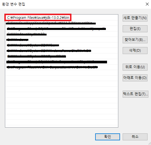 이경로를 복사하면 C:\Program Files\Java\jdk-13.0.2\bin 이렇게 나오는데 이것을